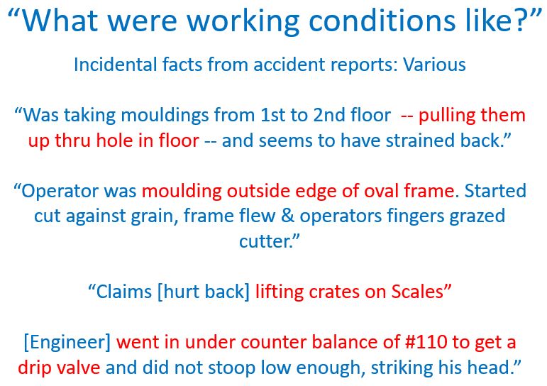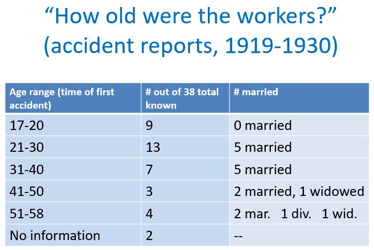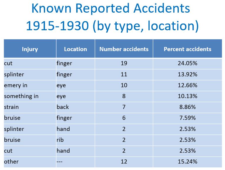 Here’s what the reports tell us about the nature of the workers’ injuries in the 1920s.