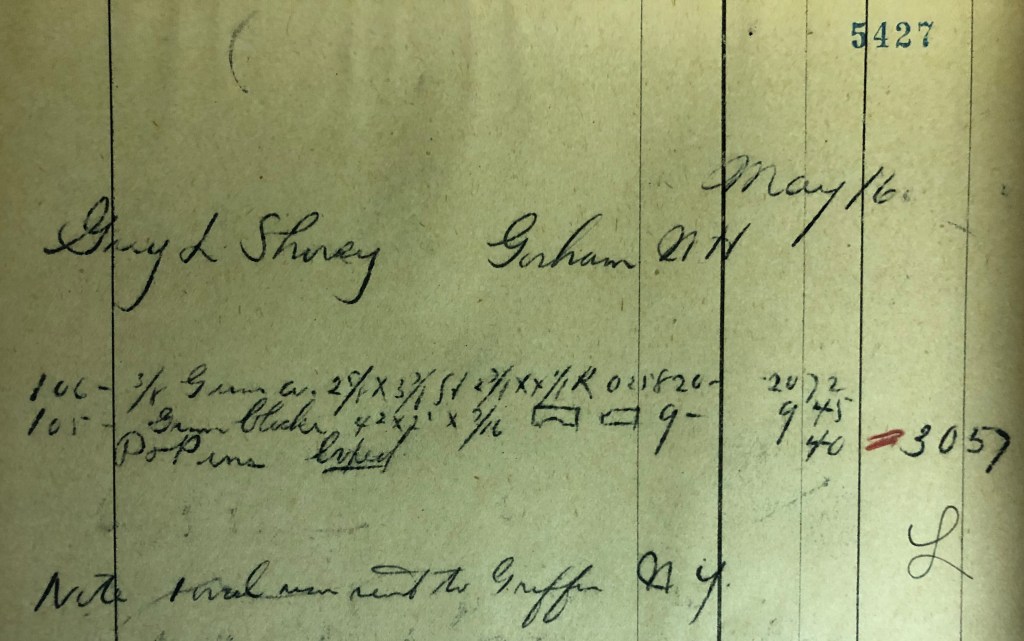 From Wayne Schwamb, we know of his father and grandfather’s love for the White Mountains. In 1901, Clinton Schwamb, in his early twenties, travelled to Chicago and Denver for a three-week visit to his cousins in those cities. His travel journal often reflects his sense of belonging in New England – “give me the Old Bay State every time.” Perhaps in Guy Shorey, an entrepreneur about Clinton’s age, who built a business and promoted the White Mountains as a destination, he found both a customer and a kindred spirit.