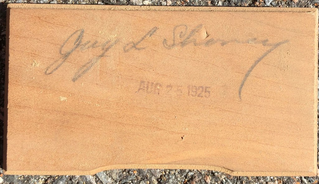 We have no correspondence between Guy Shorey and the Schwambs. We expect they met at some point because one order gives delivery instructions as “self” – suggesting that either a Schwamb delivered the samples on a trip to New Hampshire or a representative of the Shorey Studio picked them up while in the Boston area. It would be interesting to know if the panel frame with matching Old Man profiles is a design by Guy Shorey or something suggested by the Schwambs.