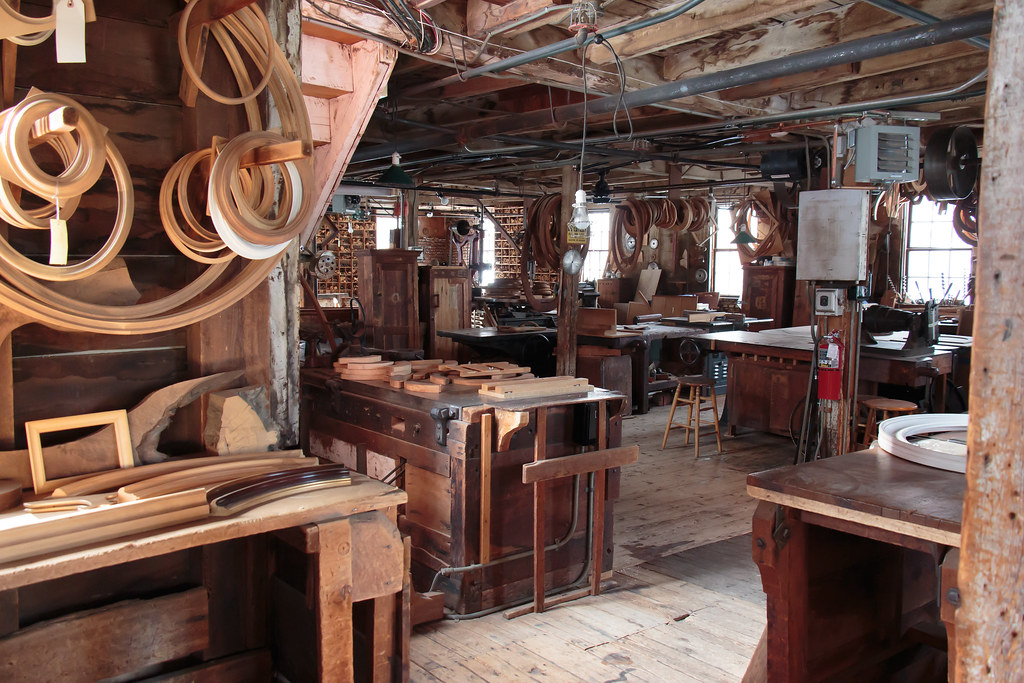The story of the Schwambs transition from working a farm in the Rhineland of Germany to working and eventually owning mills in West Cambridge (later Arlington) provides a sense of the German immigrant experience. Visitors next encounter a rare and remarkable sight: a very intact, Civil War-era shop floor that contains multiple generations of tools and machines. Upstairs, we’ll see the glue room, admire examples of finished frames in the frame showroom and enjoy a temporary art show or historical exhibit in our galleries.